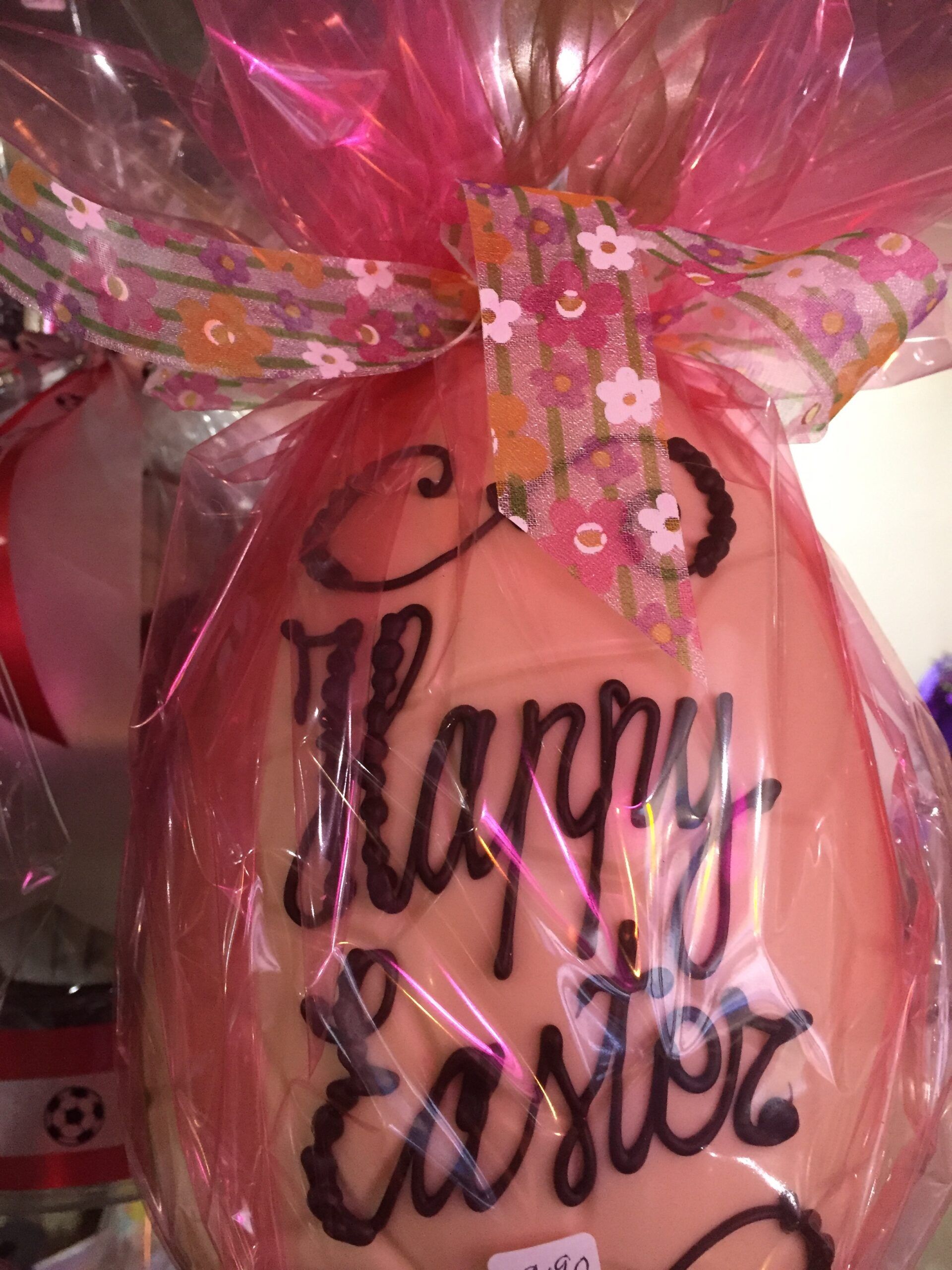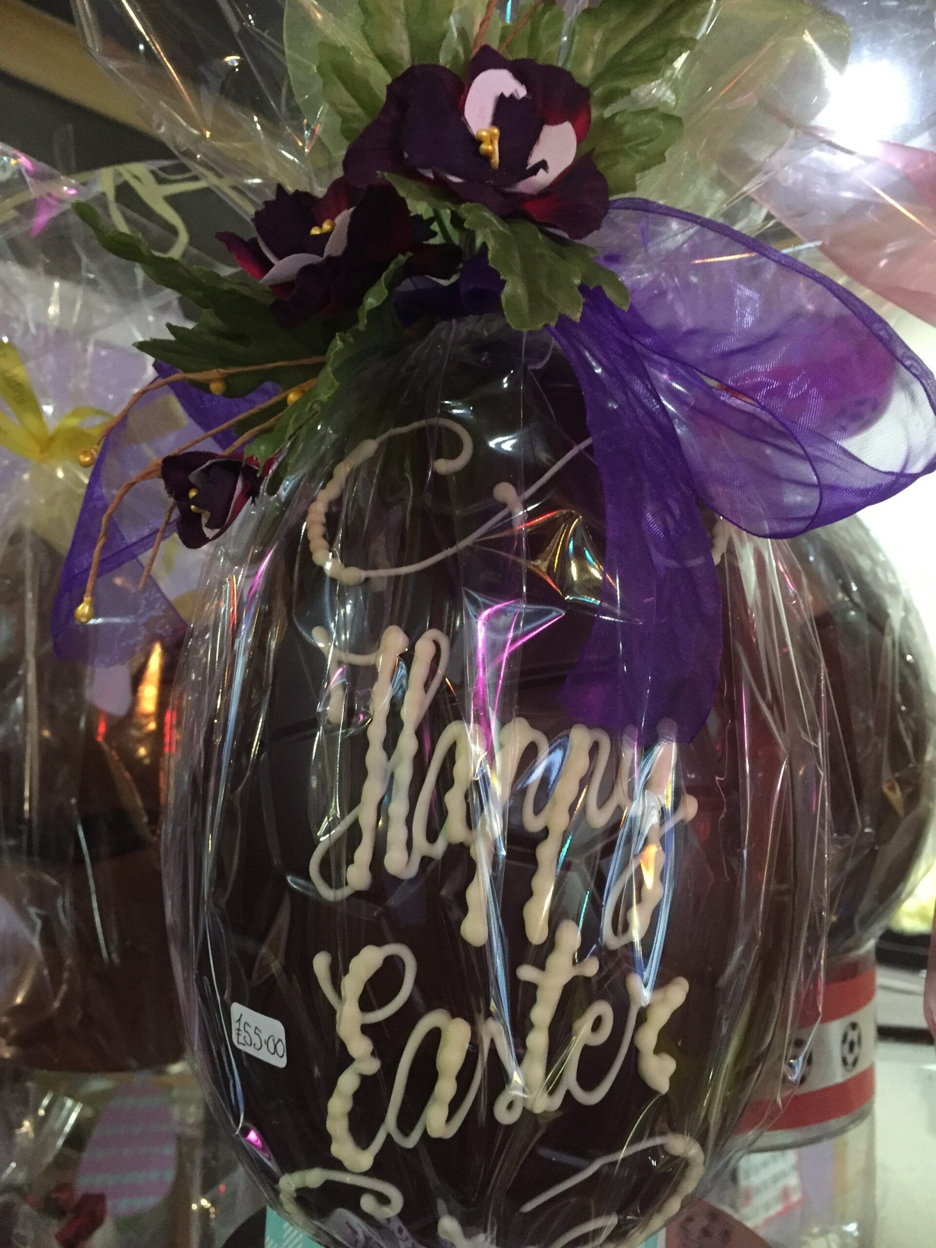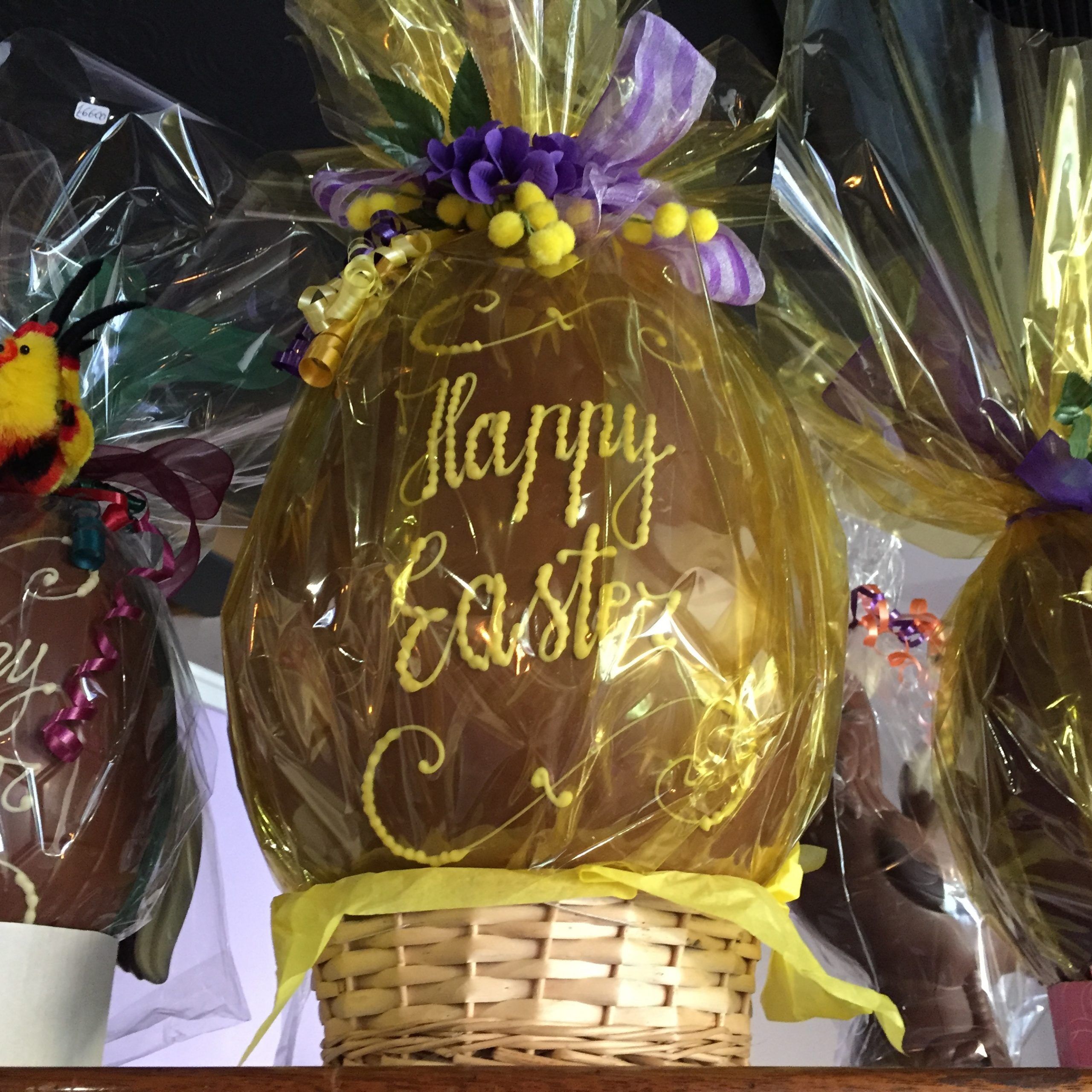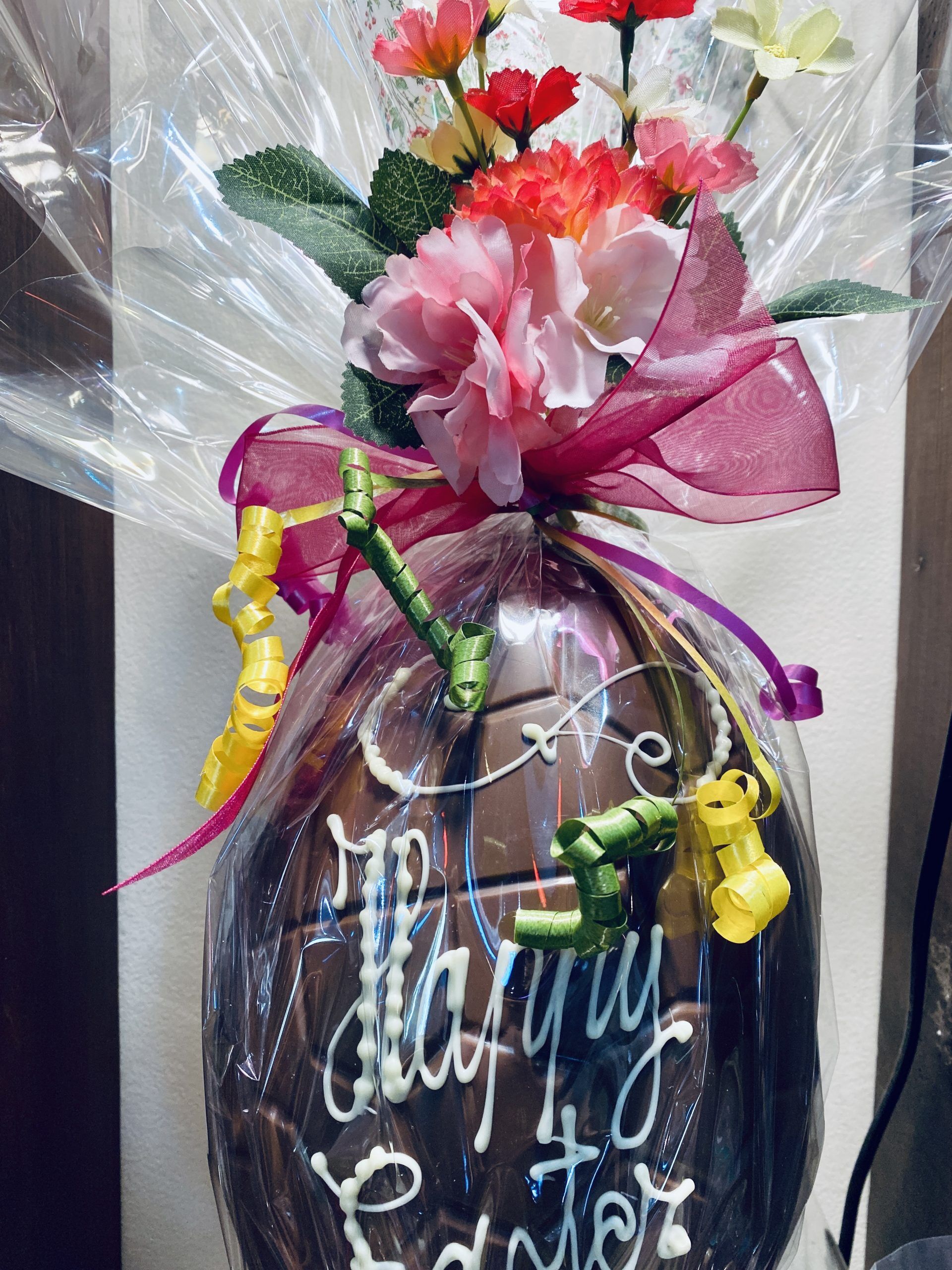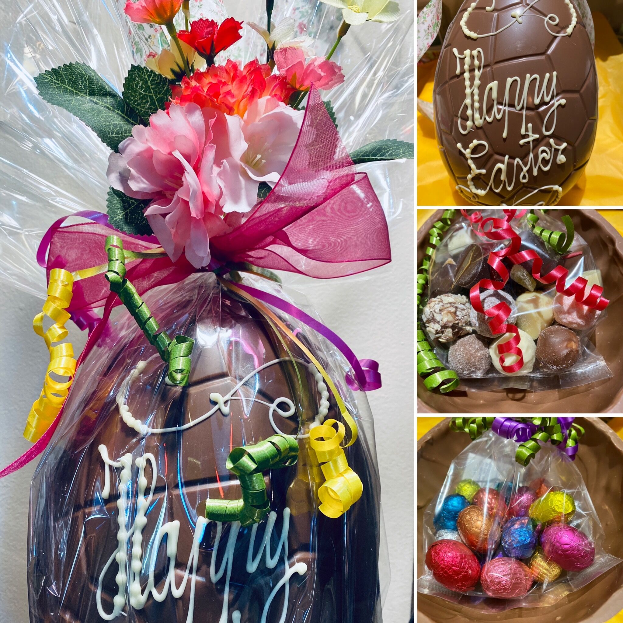 All our eggs are filled with a selection of seasonal chocolates, truffles and foiled eggs. They are hand tied with a fabric ribbon and decorated with a selection of spring flowers. Each egg is unique and will make anyone a beautiful gift on Easter Sunday.